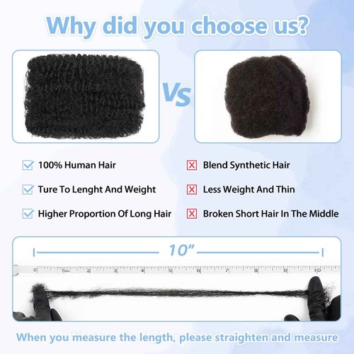 Afro Kinkys Bulk 100% Human Hair For Dreadlock Extensions Afro Kinky Curly Human Braiding Hair For Repair Crochet Dreads Loc Twist Braids (#1B, 18Inch-50Gram)
